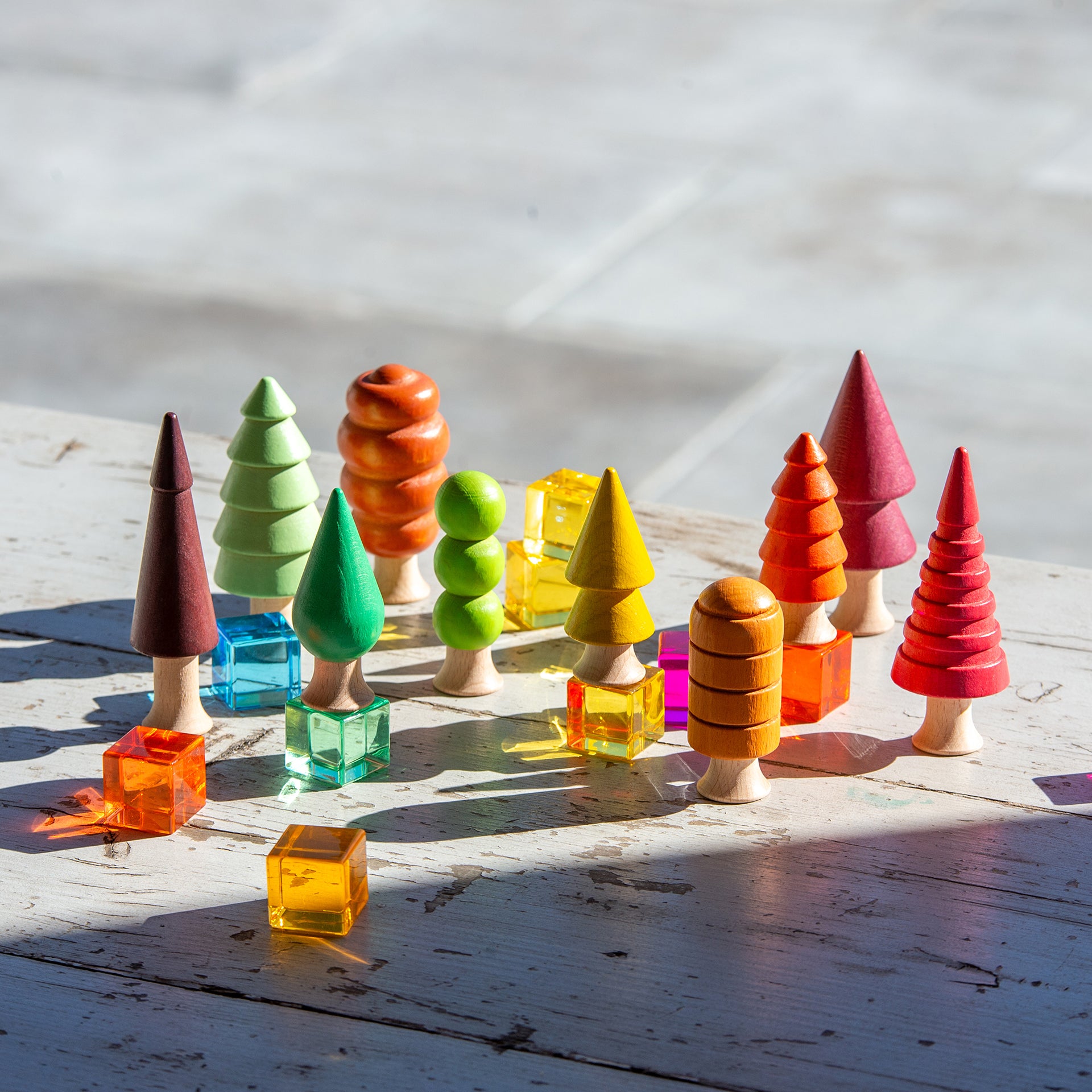 The 10 different shaped trees are different sizes and are natural shades of brown, green, red, orange and yellow. Ideal for small world play, developing descriptive vocabulary, exploring similarities and differences and promoting comparative or imaginative language skills.