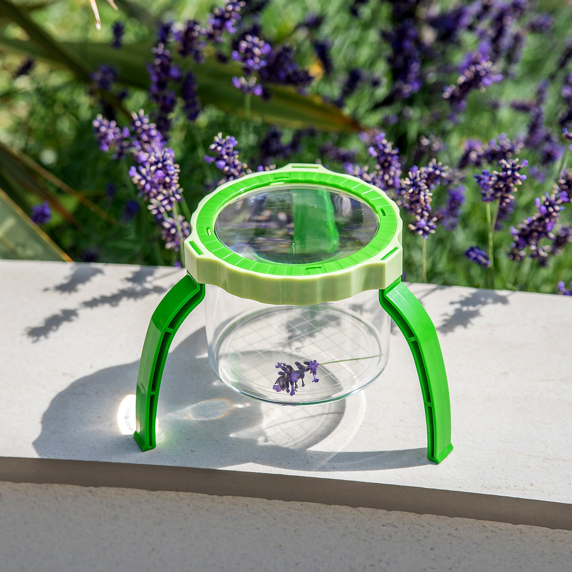 Fancy a closer look? Simply pop off the legs and hold the lens for hands-on investigation. The clever detachable pot screws right onto the lens, transforming it into a brilliant hands-free observation station—perfect for little explorers who want to examine creepy-crawlies, seeds, and sparkly bits without getting their hands tangled up.