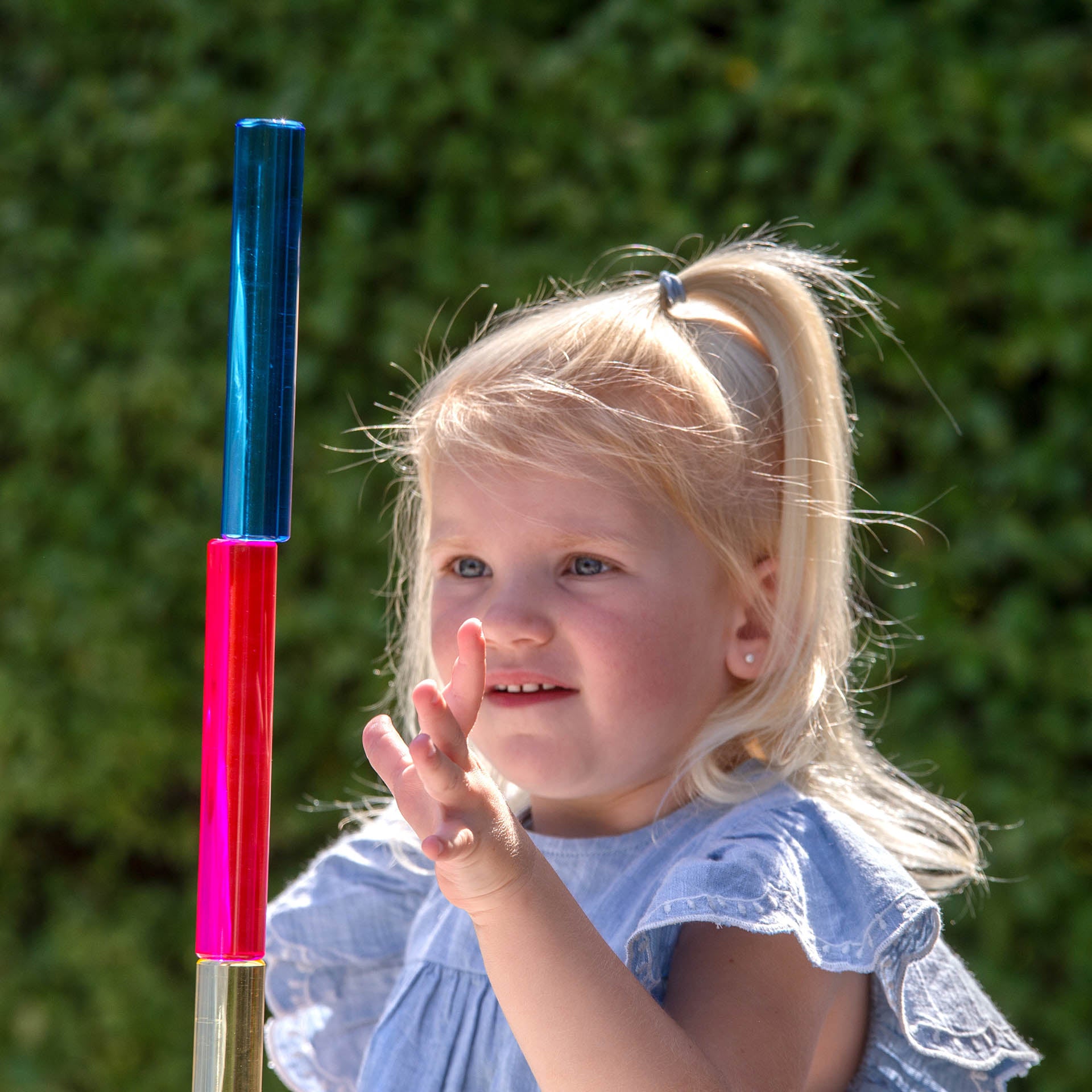 Each column showcases silky-smooth edges and a satisfying weight, producing enchanting sounds as they clink and tumble together. Watch light dance through the gems, revealing mesmerising internal reflections and colour-mixing possibilities as pieces overlap and layer. Thoughtfully sized to coordinate with tickit Gem Circles, these versatile columns excel at stacking adventures, spatial exploration, fine motor development and measurement practice. Build towering structures, create height-sequencing patterns, or arrange them into imaginative small world scenes, from fairy-tale castles to modern cityscapes.