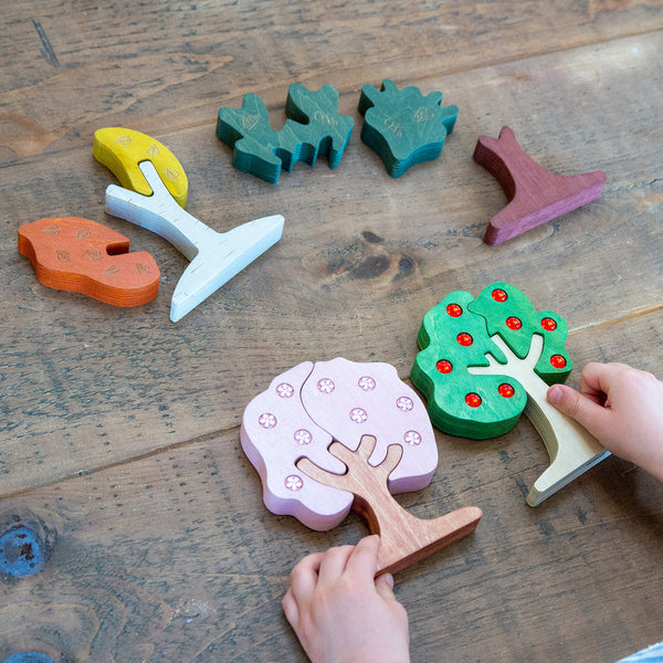 Set includes: 4 wooden tree puzzles